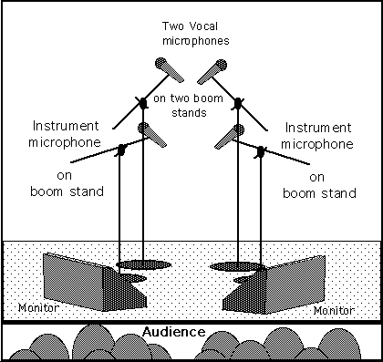 William and Felicia's stage set up and sound requirements are very simple and straightforward. Each needs one vocal microphone on a boom stand and one instrument microphone on a boom stand.